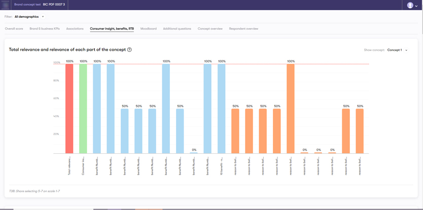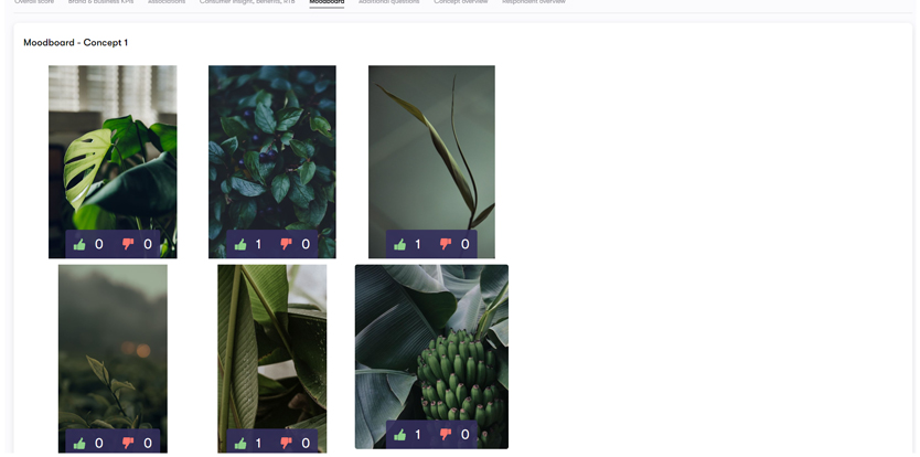 While the test is running, a client can review generated reports to see if respondents like or dislike a brand concept.
