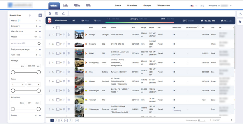 Information is aggregated from main selling websites, where dealers and other persons list their advertisements about cars they want to sell. Each country has its own set of providers supported. By default, the main country for search is Germany with providers mobile.de and autoscout24.