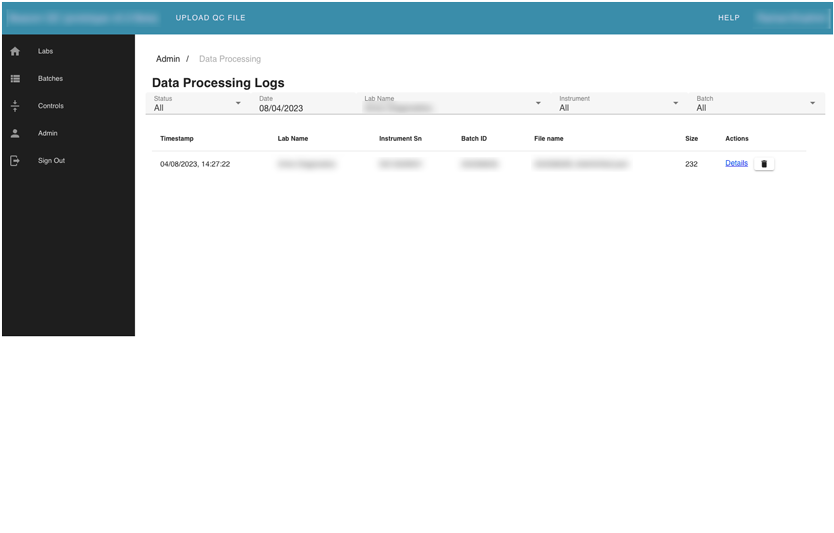 The largest module of the application. It contains information about the labs, instruments, and all tests uploaded into the system.