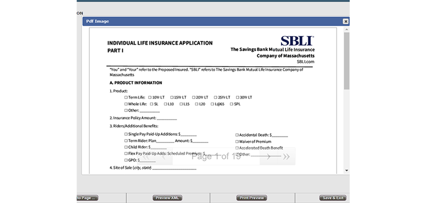 The systems are integrated with a third-party eSignature tool. To ensure that users sign their life insurance applications in the correct locations, we have defined specific areas that are displayed automatically. The system then generates applications as PDF documents and as a set of XML data files, and sends them via email or web services to an agent or a client.
