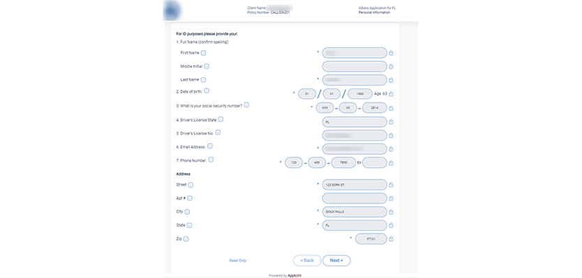 To achieve high-security standards, we implemented multi-factor authorization via SMS or voice call. When a user logs in to apply, the page validates individual information such as date of birth, zip code, and home state, all retrieved from other client systems.