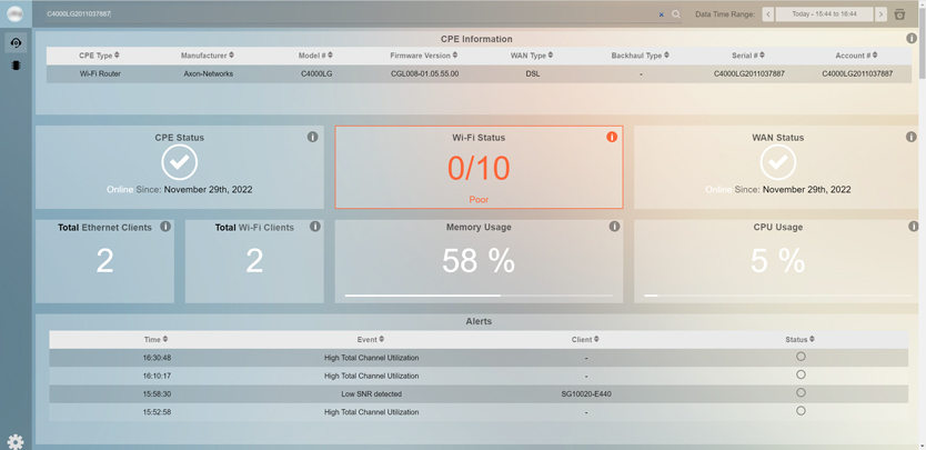 - Users sometimes call support when their WiFi signal is poor. The Alerts module will notify the operator of a problem and suggest fixes before that happens.