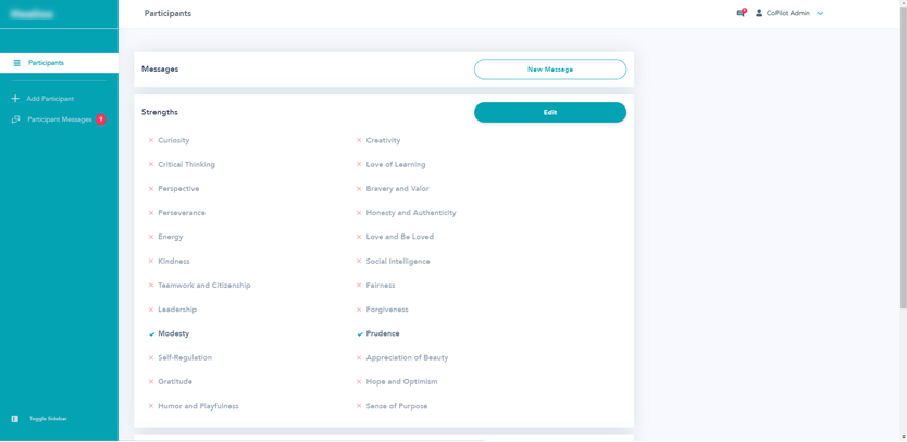 The edit feature allows the Admin or the Research assistant to edit the patient’s information, such as their Strengths, Goals, and Wellness plan.