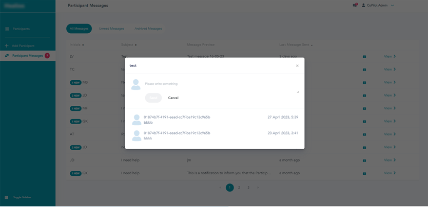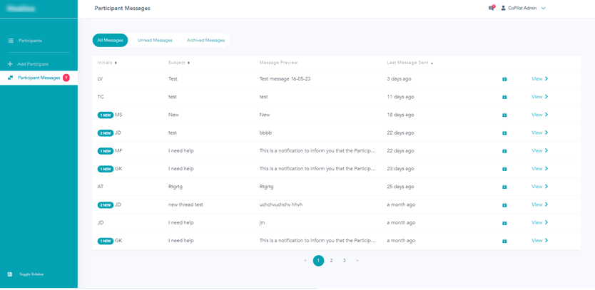The Messaging feature was created so that the Admin or the Research Assistant could communicate with the patient by texting. A lot of patients have trouble with being up-to-date with their mobile app tasks, so they need to be regularly reminded to do that and offered help and information.