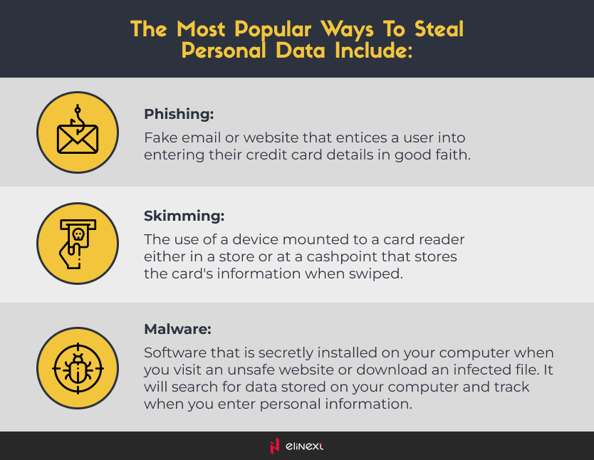 Skimming in cybersecurity involves stealing cardholders’ payment info using methods like small devices that read credit card microchips or magnetic strips during electronic transactions in physical locations.
