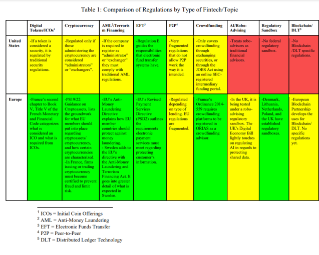 Source: Victoria Williams, ‘Fintech Regulations in the United States Compared to Regulations in Europe and Asia’