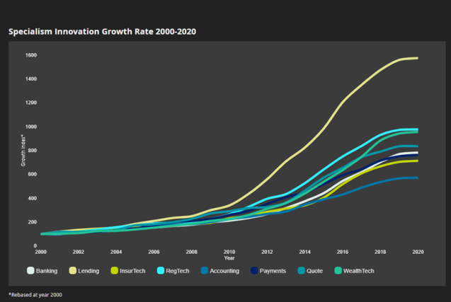 According to Deloitte, London has all the necessary ingredients to ensure digital success: demographic diversity, governmental and regulatory backup, talent, and capital. Over the past 20 years, the UK has registered an impressive growth rate, especially in Lending, RegTech, and WealthTech: