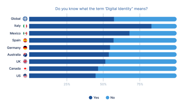 Using digital identity verification not only has significantly reduced the risk of identity theft, fraud, and unauthorized access to sensitive data but has also increased customers’ trust in online operations. However, the concept of digital identity is still causing confusion among consumers. As a result of the survey carried out in 2022 in which participated 16,000 consumers from 8 countries, iProov found that 42% of the global consumers do not know what digital identity means.