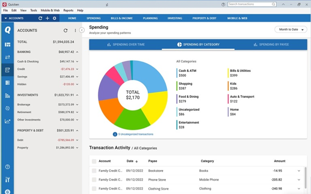 Quicken is another versatile wealth management solution that supports account aggregation, among other things. By using the Direct Connect, Web Connect, or Express Web Connect method or a combination of those, Quicken automatically accesses and retrieves data from a user’s financial institutions during nightly aggregation sessions.