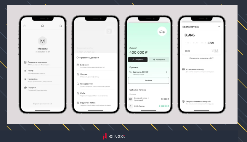 The creators of the Blanc bank see the main advantage of their service in the refusal to be tied to a bank account and the transition to financial flows. Inside the application, an entrepreneur can set up a rule that will be used to distribute incoming money according to any scheme. For example, flows can automatically set aside a fixed amount every month, week, or every day for office rent, take a percentage of incoming tax revenue or a new car, etc.