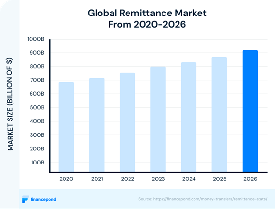 The globalized labour market and the globally connected business landscape are the two main reasons behind the boom the remittance market has been experiencing over the past years. The COVID-19 pandemic, the war in Ukraine, the decrease in fees and money transfer time, and the continuous development and adoption of digital payment solutions have fuelled the development of the sector ever further. As a matter of fact, according to Financepond, the global remittance market is expected to reach a breath-taking USD 930 billion by 2026.