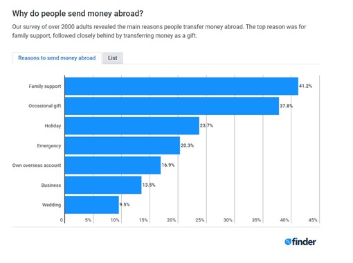 According to Finder, a UK-based credit broker, these are the main reasons people make international money transfers: