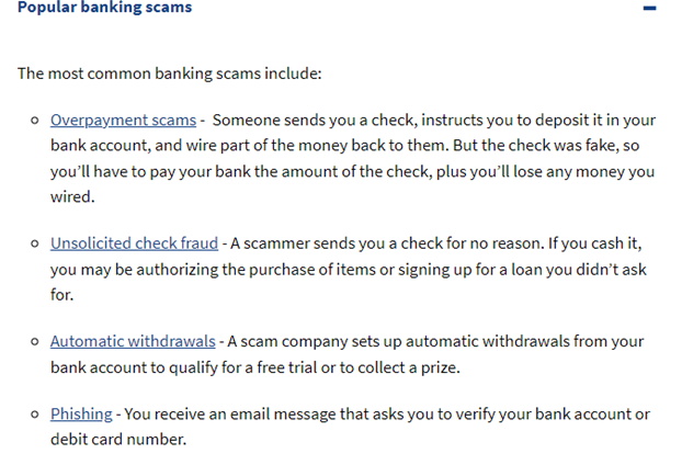 The U.S. government identifies the most popular banking scams: