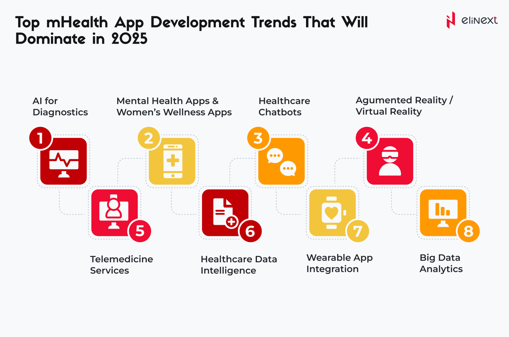 In 2025, mobile app for healthcare and health monitoring app adoption is surging, with the global mHealth market projected to reach $81.7B. Trends include AI-powered diagnostics, telemedicine, wearables, and blockchain for data security. Healthcare software development services are now focused on personalized care, remote monitoring, and seamless integration with electronic health records (EHRs). AI-powered health monitoring apps predict risks and automate alerts, improving outcomes and efficiency.