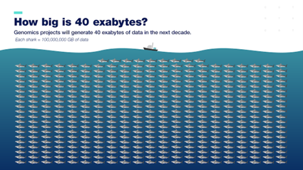 According to the National Human Genome Research Institute, by 2025, genomics research is expected to generate anywhere between 2 and 40 exabytes of data. To help neophytes grasp the magnitude of this prediction, NIH resorted to eloquent parallelism with the famous movie Jaws.
