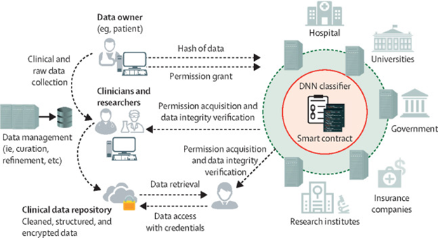In healthcare, blockchain can become a valuable piece of the cybersecurity puzzle. Blockchain is a shared, incorruptible and digitally distributed ledger that exists across a network. Simply speaking, it is essentially a very secure database that is extremely difficult to alter or hack because data is stored not in one place but in many. By concealing any individual’s identity with complicated codes, blockchain provides a safe space for sensitive medical data. And due to the decentralized nature of the technology, healthcare providers and organizations can share information in a quick and secure manner.