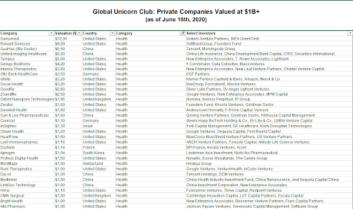 According to their data, there are 31 healthcare companies (as of June 2020) that have gotten VC funding of over 1 billion dollars.