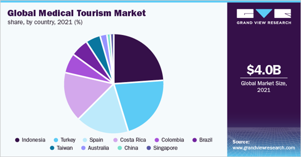Research and markets estimated the global medical tourism market size is expected growth to USD 97.9 billion by 2030. Expected Compound Annual Growth Rate (CAGR) is at 32.51% during the forecast period. The potential of the already established and functioning market is vividly seen in the image below: