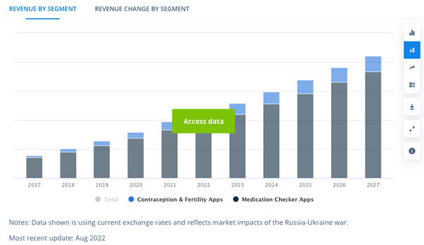 If you decide to build a health app for the German market in 2023, this is a great idea. Firstly, any type of healthcare solution will find its user and its niche as the above-mentioned statistics demonstrate that the demand for mHealth products is growing. Secondly, you will make a profit on healthcare applications. According to Statista, revenue in the e-health apps market is expected to amount to $1.84 bln in 2023.