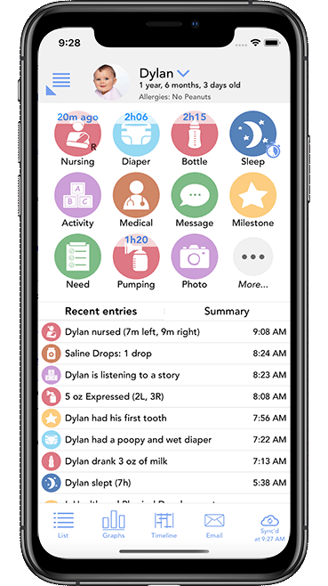This is one of the most popular apps that allows parents to keep a complete record of their child’s development. Baby Connect boasts many sections and features that include feeding records, diaper change records, sleep data, baby development charts, and so on. Parents can create journals, write down activities and plans, take photos, send messages, and more.