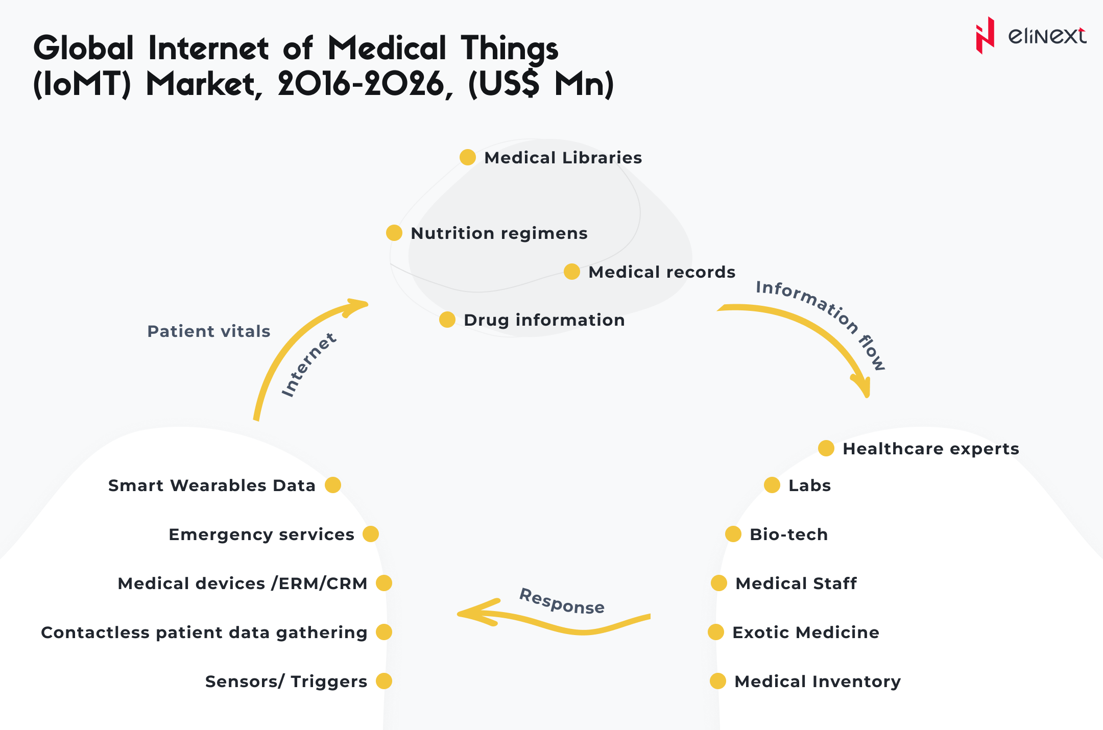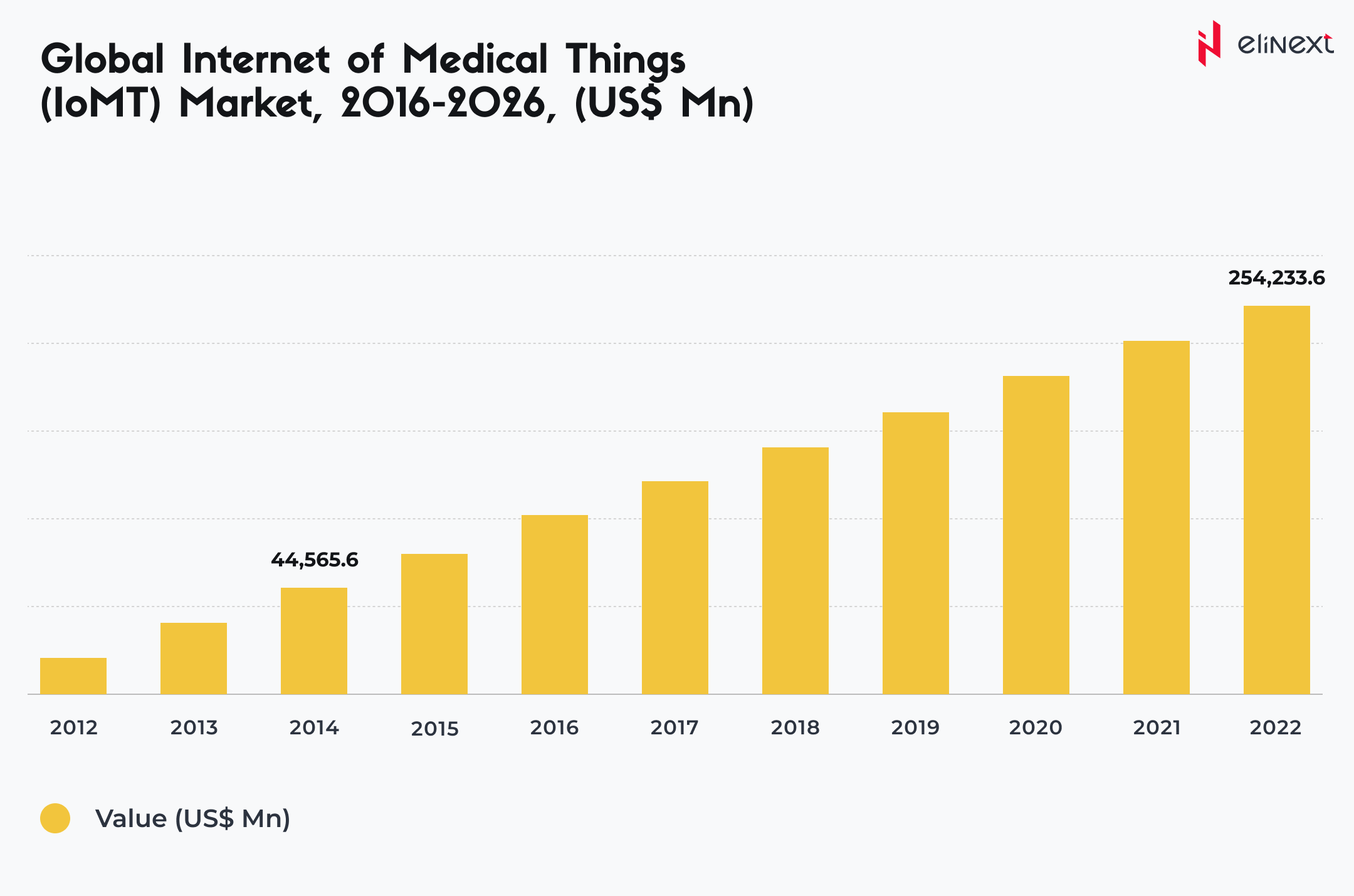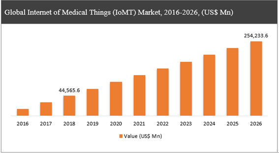 According to All The Research, by 2026, the IoMT market is expected to reach USD 254,233.6 million, growing at a CAGR of 24.4%.