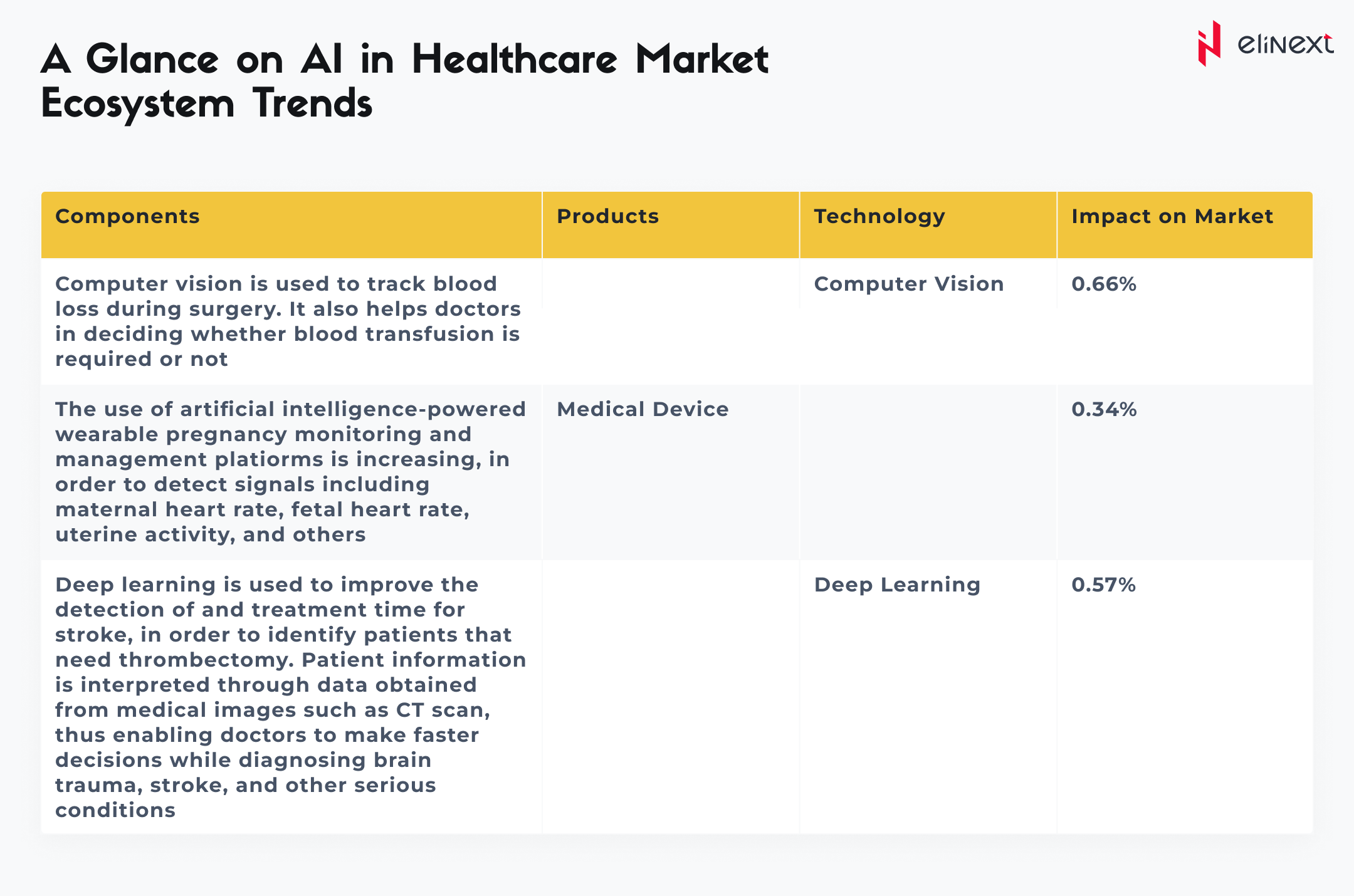In a report published in July 2020, All The Research estimates that, by 2027, AI in healthcare market size will reach $ 30.9 Bn, growing at a CAGR of 24%. According to the same source, this is how AI projects itself in the Healthcare Market Ecosystem: