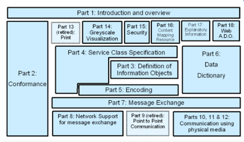 DICOM doesn’t just define sets of images and data; it also covers the transport protocol and various other services. As of now, the entire standard comprises 22 interconnected yet standalone sections. For instance, there are sections that encompass: