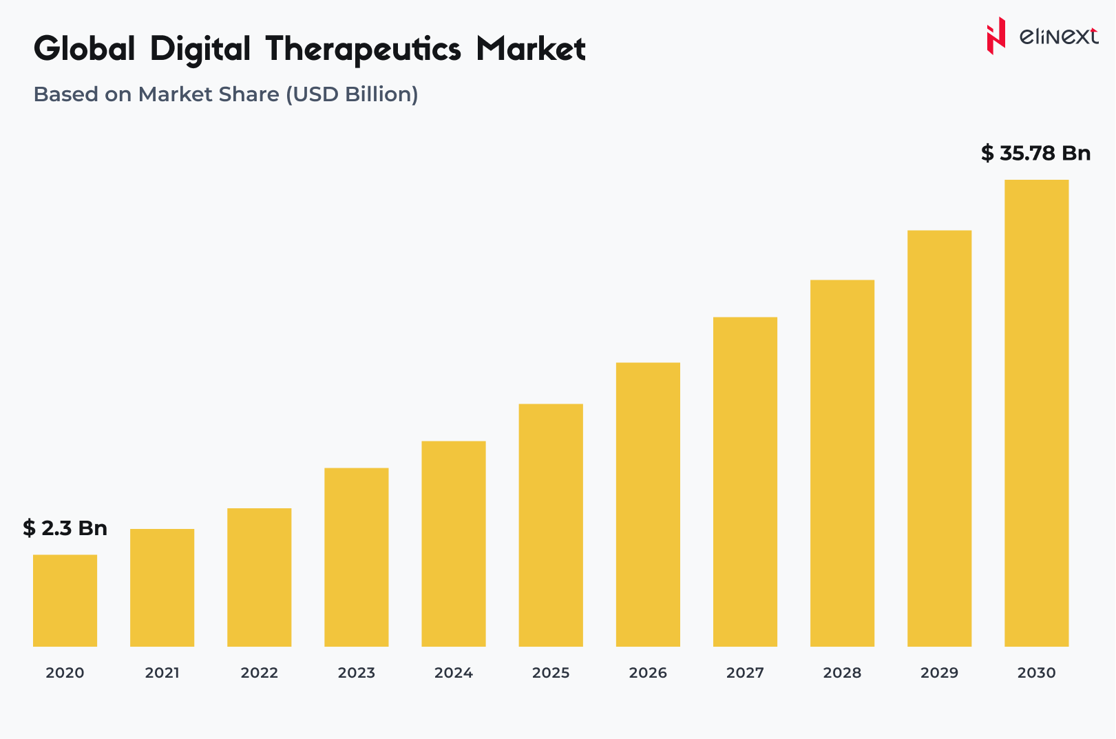 According to Strategic Market Research, by 2030, the global DTx market is expected to reach $35.78 billion, growing at a CAGR of 31.4%: