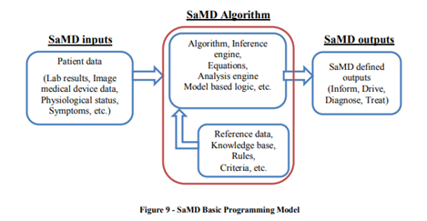 In 2017, IMDRF defined the context of the clinical evaluation process that involves SaMD. Basically, a SaMD uses an algorithm that operates on digital data, producing an output for the medical purpose defined by its manufacturer: