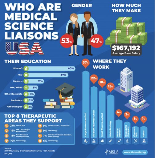 Medical Science Liaison (MSL) teams are made up of individuals with various scientific backgrounds. The MSL is an expert, who has experience in several therapeutic areas. In the US, the MSL can be f.e. a Pharmacist or a Medical doctor.