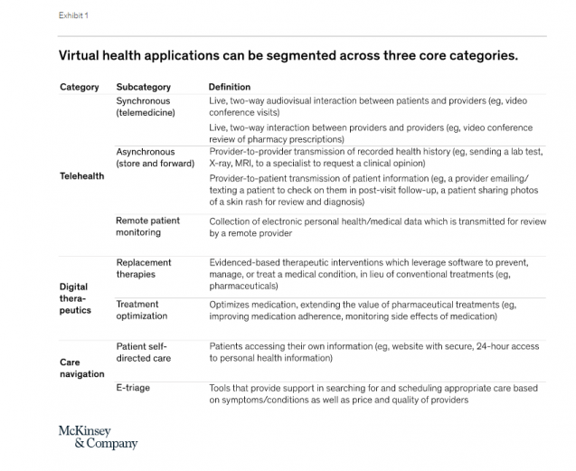 “Telehealth is a very broad category of solutions that service patients at a distance — so it could be doctor visits at a distance, it could be chronic condition management, it could be managing high-risk pregnancy. But doing that at a distance, doing it remotely.”