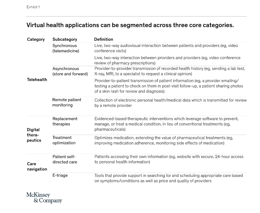 We’d also explore the forecasts of the leading consultants’ firms (such as McKinsey’and PwC) reports and takeaways them on virtual health, and try to figure the full potential on the trend in the modern healthcare tech world.