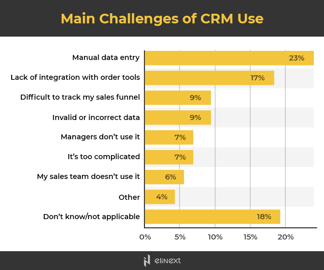 It’s no surprise that lack of integration comes high on the list of the main challenges to CRM and ERP adoption, as shown in the graphic below.
