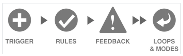 In his book, Dan also described the structure of micro-interactions as consisting of four main components which are shown on the graphics below: