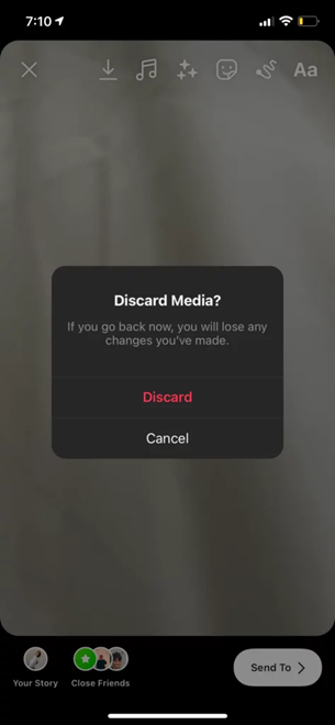 When interacting with an application, it’s not an unusual thing to click on something by accident. A well-designed digital product should make it easy for users to reverse these actions and prevent mistakes. Micro-interactions can help with that by offering notifications and alerts in a user-friendly, non-disruptive way — here’s how Instagram asks for confirmation before discarding a story without saving changes.